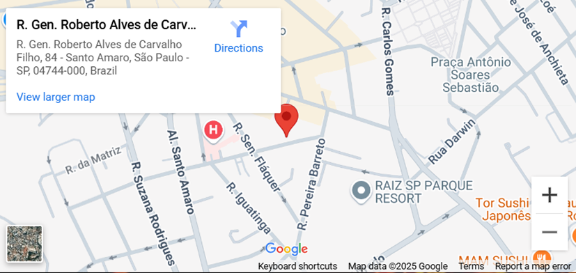 Rua General Roberto Alves de Carvalho Filho, 84 – Sobre Loja – Santo Amaro – CEP: 04744-000 – São Paulo, SP